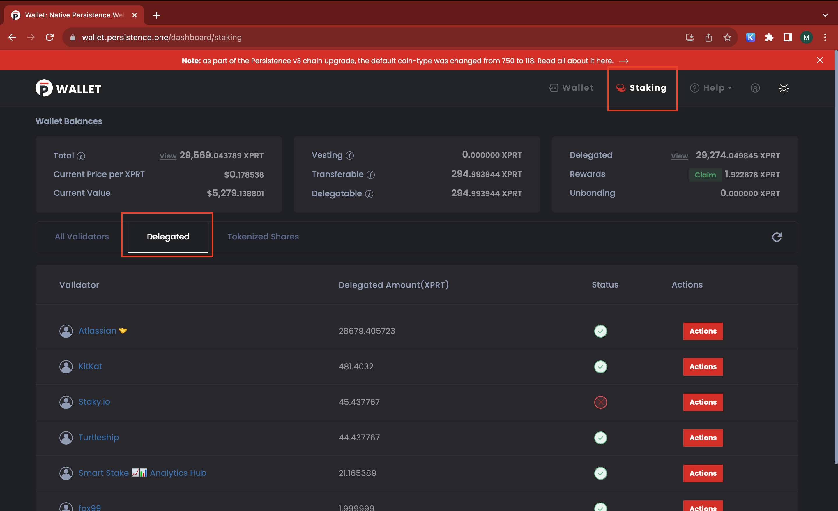 C. Migration done, your staked/delegated tokens will now be visible in the 'Delegated' Section like before.